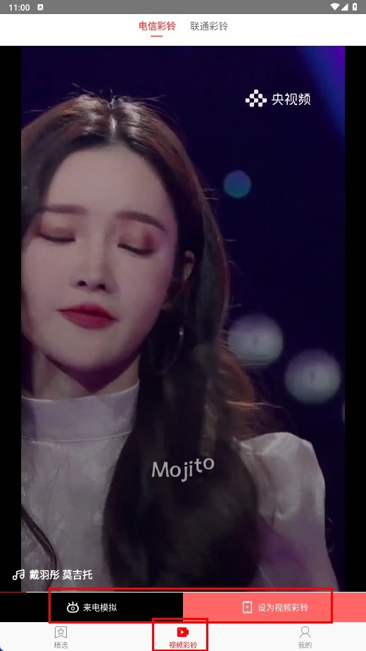 点击页面底部的【视频彩铃-功能按钮】,进入视频彩铃界面后,就能进行视频彩铃的设置或者来电模拟操作。