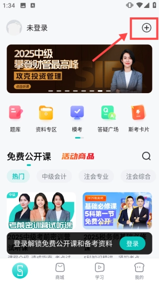 进入软件首页后,点击页面右上方的【+】按钮,就能通过扫一扫功能来进行答疑。