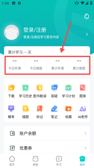 最后是我的界面,在这里能清晰查看自己的学习情况。