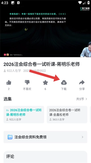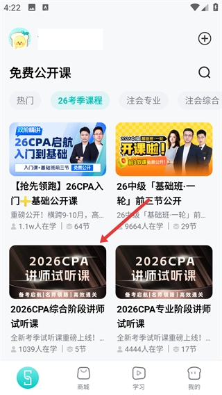 在26考季的课程中,咱们可以选择【2026CPA讲师试听课】,然后进入课程详情页面哦。