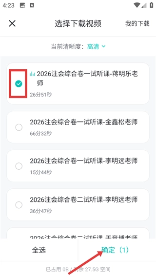 在视频选择界面,勾选所需课程后点击【确定】按钮,即可启动视频播放。
