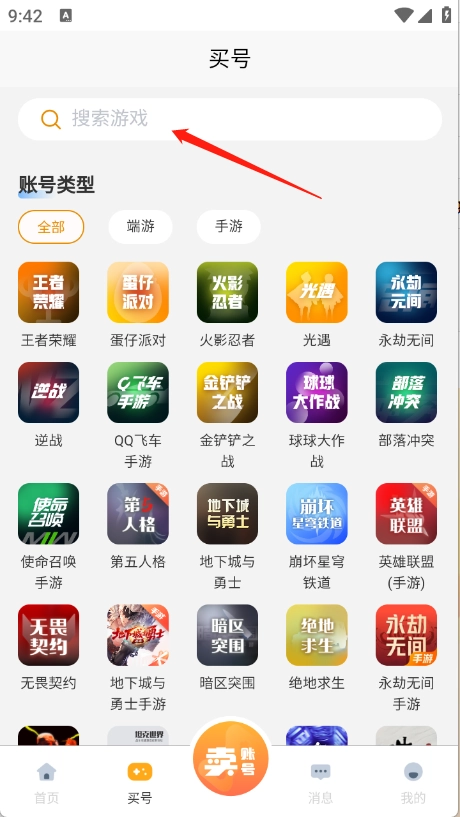 首页页面汇集了很多的热门游戏账号。