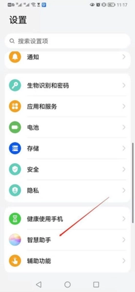 点击“设置”进入对应界面后,在界面的列表里找到“智慧助手”这一选项。
