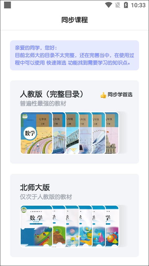 同步课堂的教材与初中数学课程、北师大版教材内容保持一致,能够适配课堂的学习节奏。