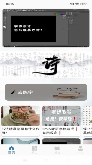 首页推送的书法训练学习模式等功能一应俱全,是个超简约高效的学习平台。
