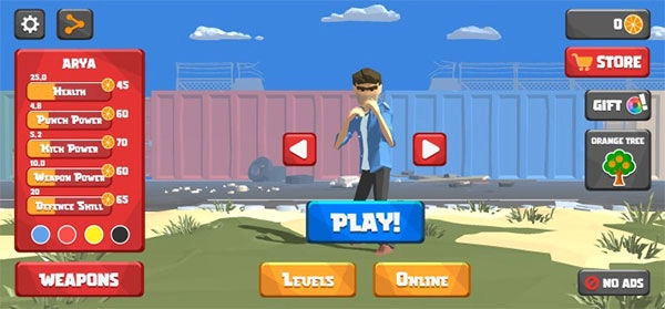 1、进入街头搏斗游戏,选择你的角色点击"PLAY"即可开始游戏;
