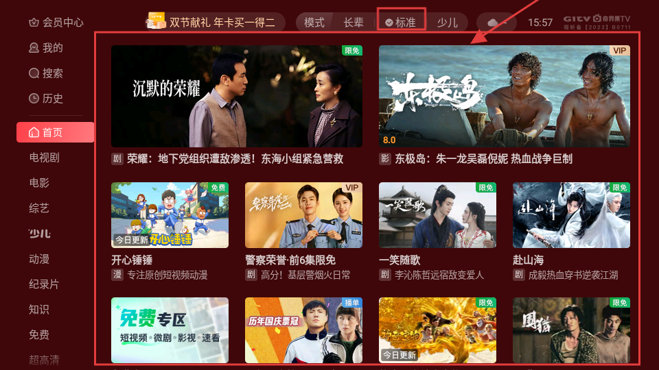 若想回到标准模式的首页,点击左侧导航栏中的【首页】选项,即可浏览各类影视内容,选择你感兴趣的观看吧。