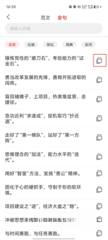 软件里除了范文,还准备了不少精彩金句供你参考;要是碰到喜欢的金句,一键就能复制到剪贴板,再也不用怕灵感突然溜走啦!
