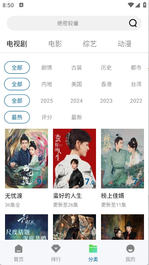 “排行”页面,根据当前热度将影视进行了智能排序。