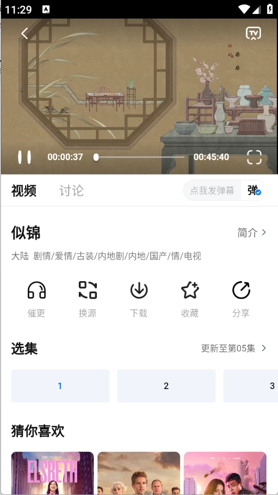 找到想看的影视资源后,点击就能进入播放页面,还可以进行看弹幕、切换播放源等操作。