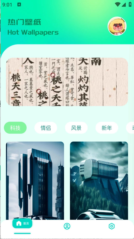进入首页后,这里汇聚了丰富多样的壁纸资源,涵盖情侣、科技、风景等各类主题。