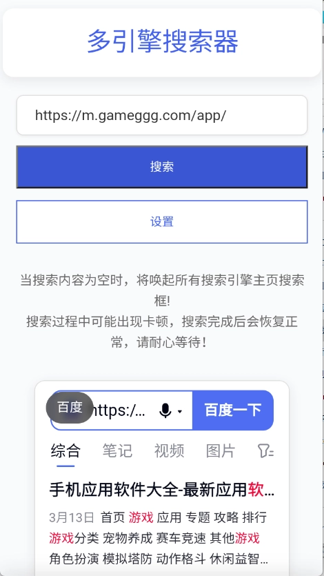 提供直观的操作界面,只需输入一次关键词,就能完成多引擎搜索。