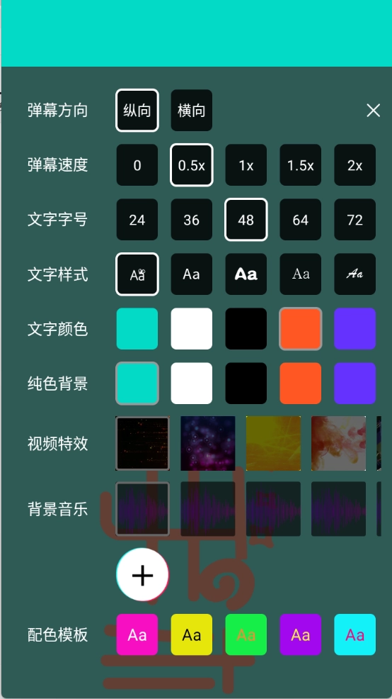 在弹出的页面里选择弹幕的方向、文字的颜色、背景等相关内容。