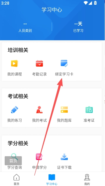 为避免遗漏课程学习、确保学分申请顺利,并防止学习卡丢失,建议您登录学习中心后,首先进行学习卡绑定操作(若您未持有学习卡,则无需进行此项操作)。
