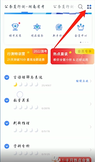 1、首先打开手机中的粉笔,进入首页之后点击右上角的方形按钮,如图所示。