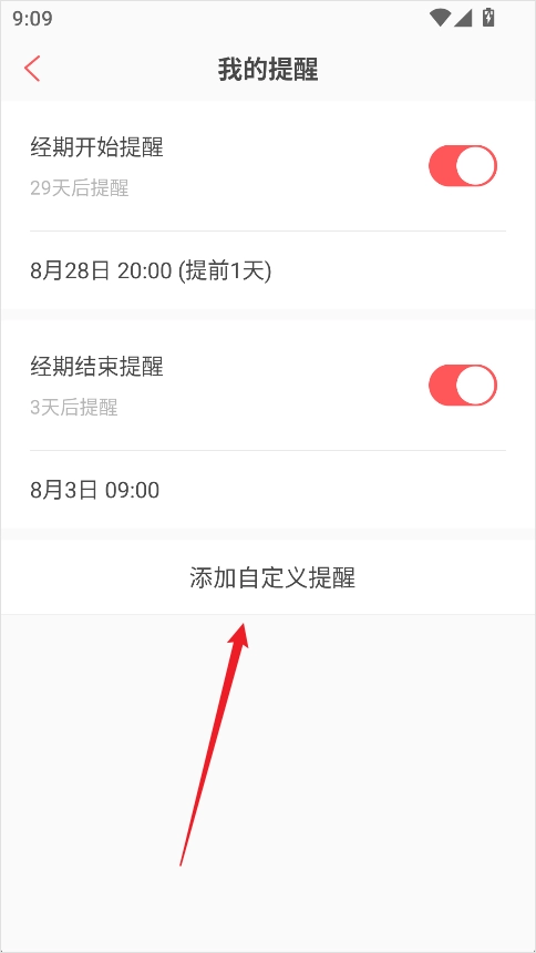 3、点击【添加自定义提醒】,进入设置页面;
