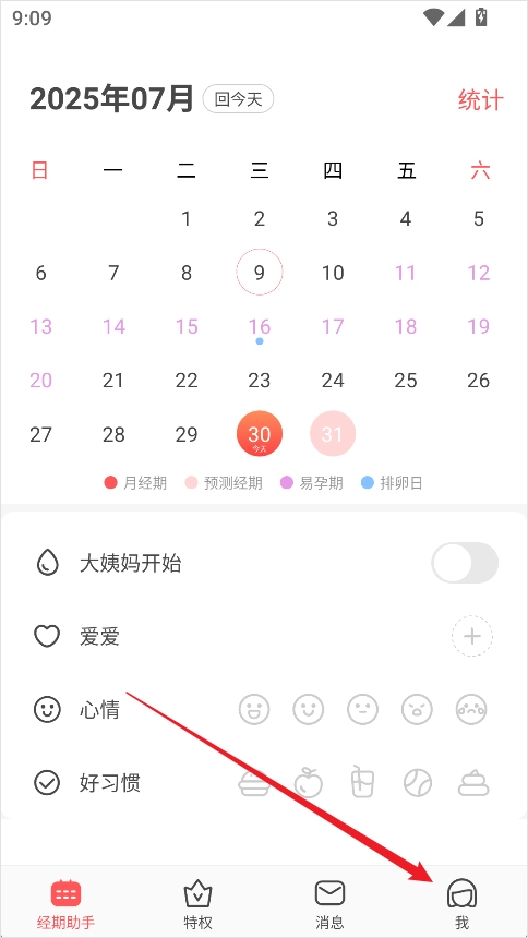 1、打开西柚大姨妈App,点击右下角的【我的】进入个人中心;