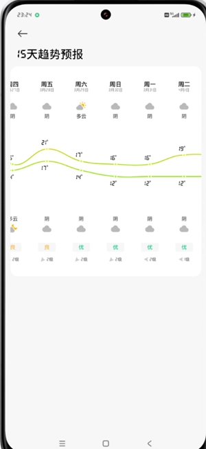 15日天气预报:提供未来15天的天气、风向、温度和空气质量趋势预报。