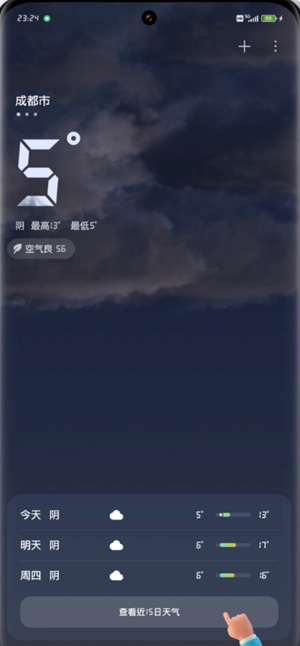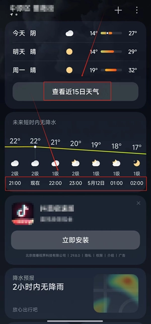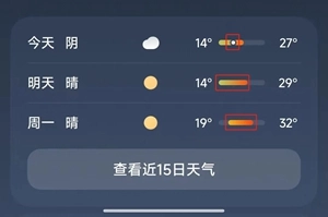 1、小米澎湃OS2的【近15天趋势预报】功能位于小米天气中,实际上,该功能在很早之前就已出现在miui天气里了。