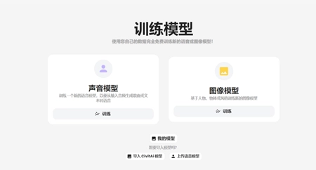3、可以训练声音模型和图像模型,选择声音模型,在这里就可以训练你想要的影视剧人物进行“唱歌”了。