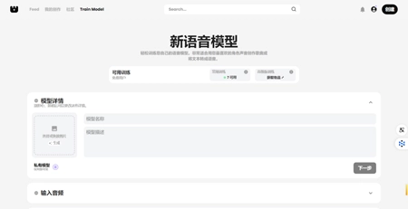 模型训练操作:在首页点击“训练模型”,上传干净音频数据,生成个性化语音模型。