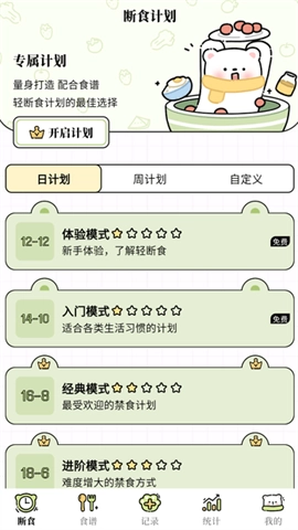 提供多种断食方案供选择,包括按日、周规划的模式以及可自由设定的方案,能适配不同人群的减重目标。