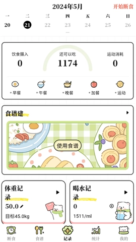 记录每日断食的起始与结束时刻,以及断食持续时长和饮食时段,便于用户对断食相关信息进行管理。