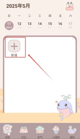 接着点击左侧的“+”号,新增饮水打卡目标。
