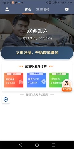 司机只需点击“立即注册,开始接单赚钱”按钮,就能轻松开启注册流程。