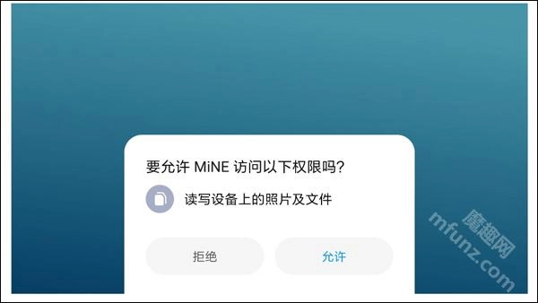 开启MiNE如果没有存储权限则会弹出授权请求。