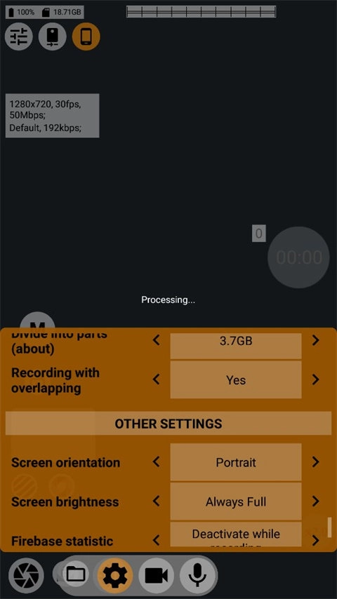 还想补充的是视频分割和屏幕亮度设置,我现在用的是无限制视频分割模式,屏幕亮度也一直调在最高。视频分割的作用是当录制的视频达到特定大小后,自动把已拍摄的部分存成一个独立文件;而无限制模式则是等录制完全结束,才将整个内容打包成一个视频文件。这个无限制模式有利有弊:好处是不用费劲对大文件做二次拼接,省了不少事;但坏处也很明显,如果遇到突发状况,比如手机没电关机、或者因过热导致系统强制退出录制软件,整个视频文件就可能丢失。至于分割模式,优点在于手机会每隔一段时间自动保存一次,能有效避免文件丢失的风险。大家可以根据自己的实际需求来调整这些设置。