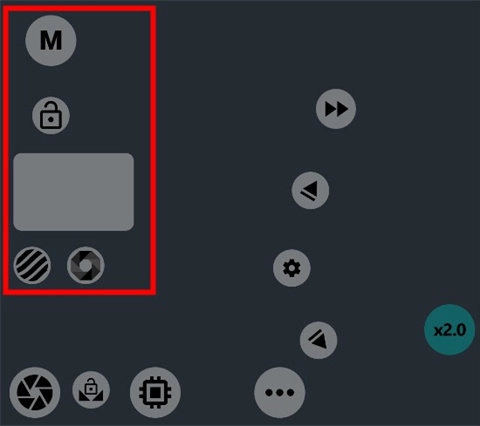 接着我们来到了二号红框区域,这里的主要功能是调节感光度、快门速度以及曝光补偿。原始界面如左图所示,点击“M”后界面会切换为右图的样子。