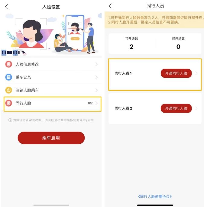 在乘车页面添加同行人员信息(无需实名认证),完成添加后就能凭乘车码乘坐地铁。