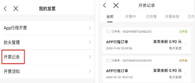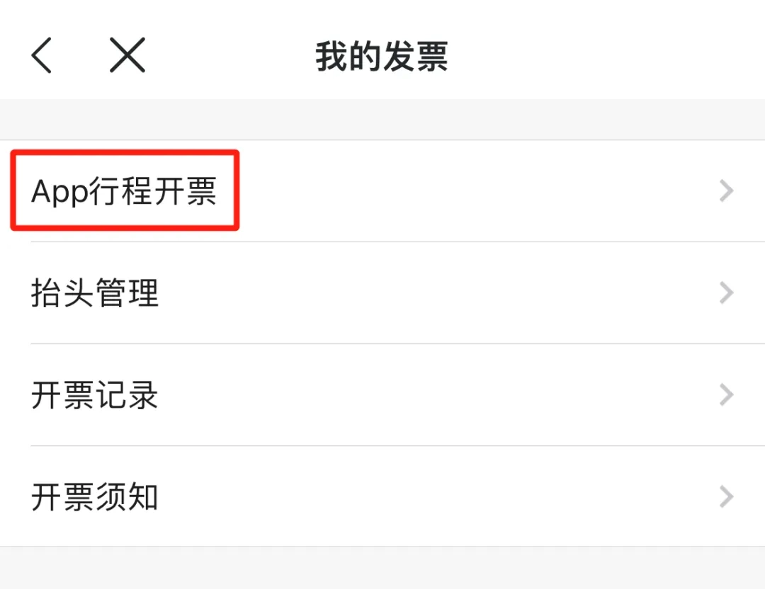 在我的发票界面内选择【App行程开票】