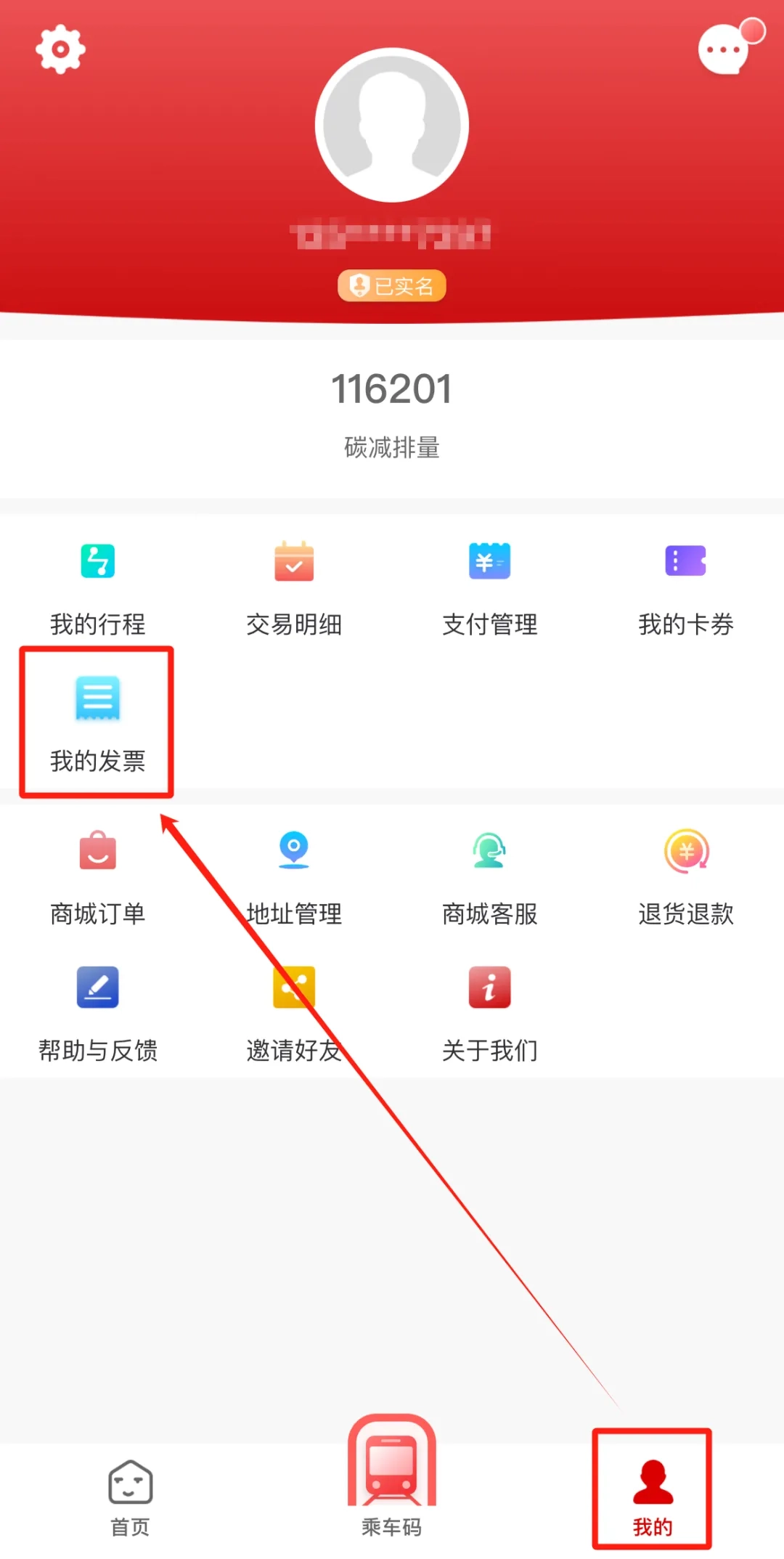 登录后,先为您的主账户开通【人脸乘车】功能,具体操作是在【乘车码】页面的右下角找到并点击【人脸乘车】选项。