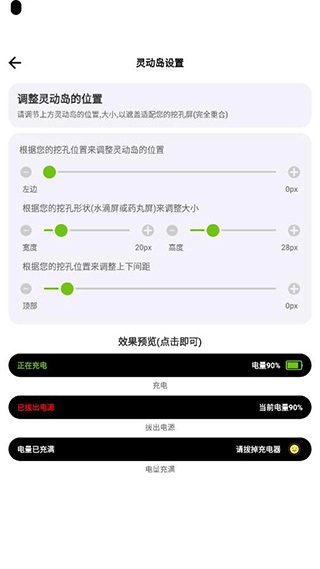 成功开启后,点击进入灵动岛的设置界面,就能开启灵动岛的显示效果了。