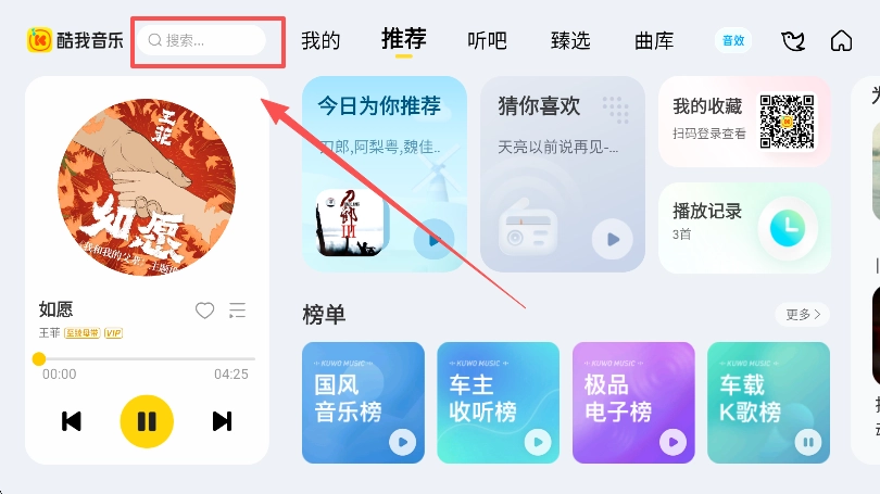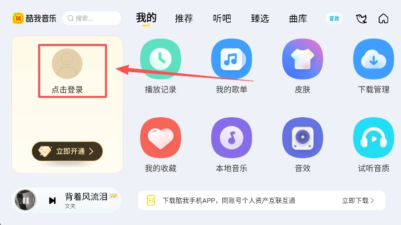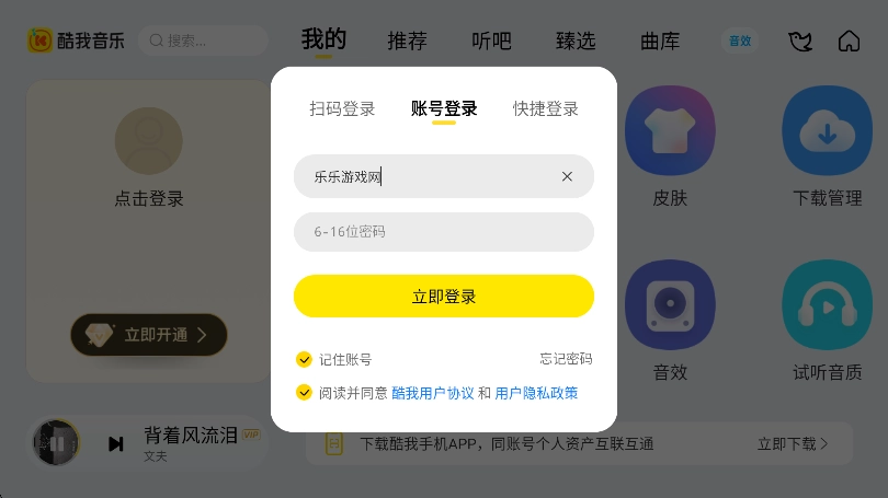 登录使用:安装完成后,使用酷我账号登录即可。