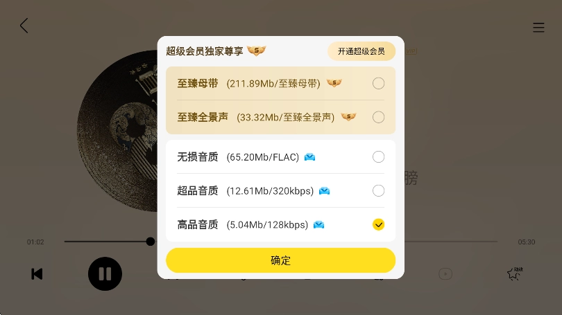 勾选想要的音质,然后点击确定