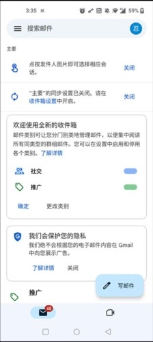 3-能够运用Gmail的会话式界面,还能与电脑版的Gmail实现同步之类的。
