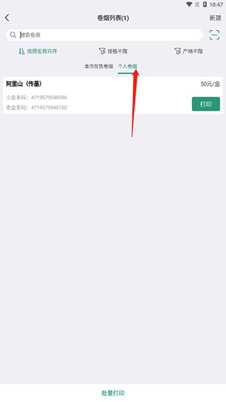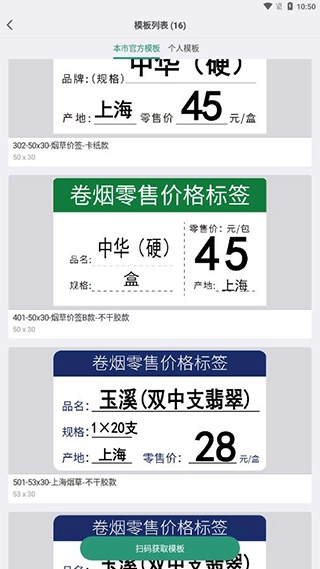 烟草价签管理打印软件最突出的优势在于其便捷的价格标签打印功能:只需开启蓝牙连接打印机,选定需打印的卷烟,再挑选合适的模板与尺寸,点击打印按钮即可快速生成价签。此外,软件还配备了多样化的模板供用户选择。