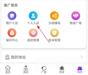 进入按个摩的个人中心,点击“个人入驻”。