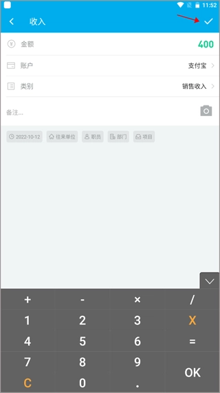 在收入信息页面录入相关的数据与内容,填写完成后即可执行保存操作。