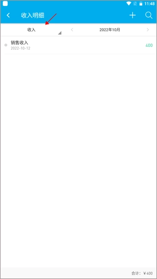 会看到还没有收入记录,点击右边的“+”图标。