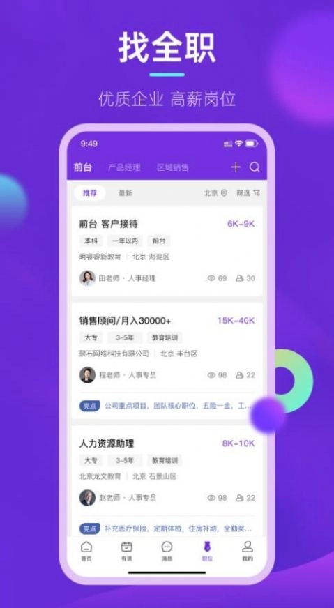 《垚途直聘》是一款非常不错的招聘软件,平台上为用户提供了海量的职位信息,大家可以根据自己的需求去尝试投递,能帮助你更轻松地找到合适的工作。在软件里,用户还能直接和招聘方沟通,全面了解岗位的各种情况,而且对方的回复速度都很快。另外,软件内的所有信息都经过严格审核,具有可靠的保障,用户可以放心使用,感兴趣的朋友不妨来体验一下。
