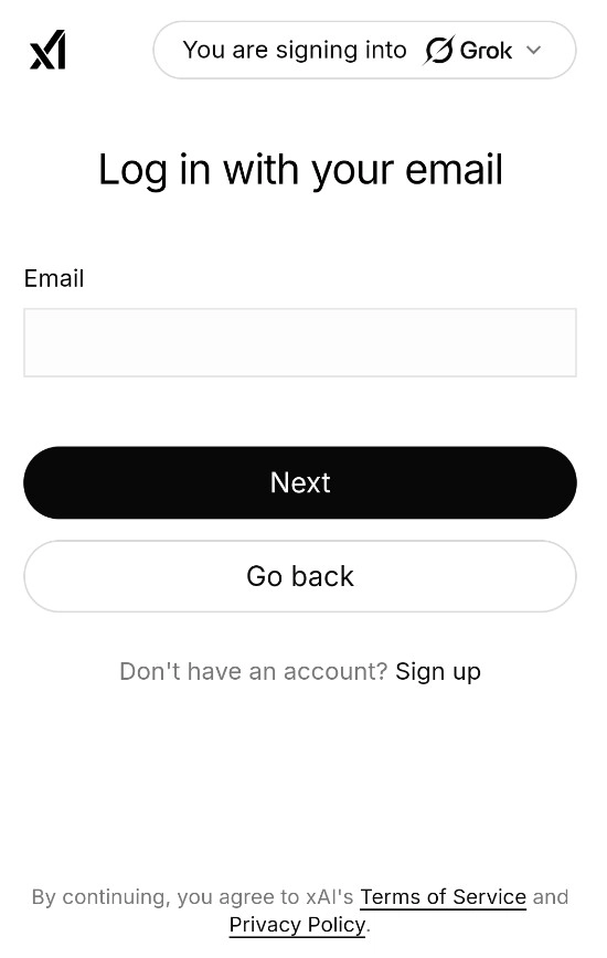 安装并打开grok后,首次使用想要先登录注册。