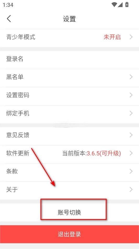 点击账号切换或退出登录即可