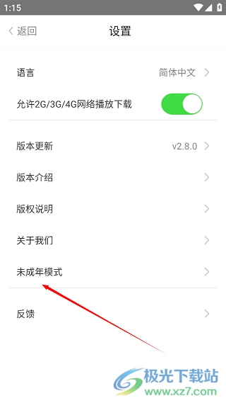 进入新页面后,在选项列表里找到“未成年模式”并点击。