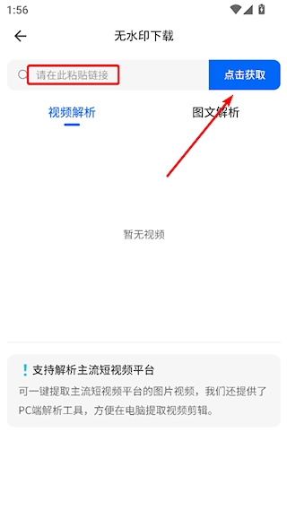 从视频平台分享视频拿到链接后,把链接粘贴进去并点击获取,就能得到无水印的视频了。