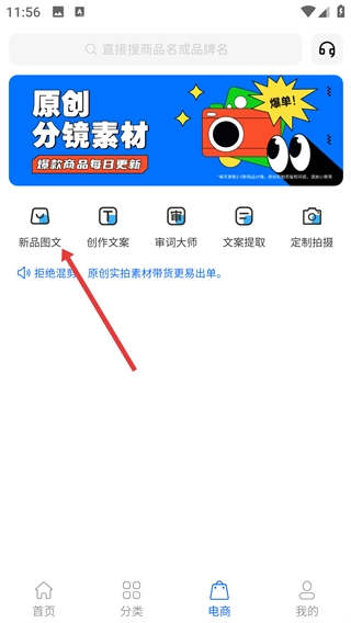 在电商界面里,点击【新品图文】这个选项,能更方便大家挑选到合适的素材呢。