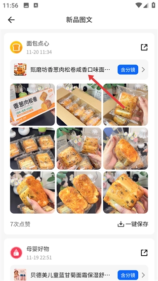 进入【新品图文】板块后,挑选包含分镜的商品,像【甄磨坊香葱肉松卷】这类,就可以为后续的创作工作做好准备啦。